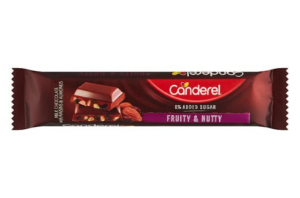 Chocolate con leche con pasas y almendras. edulcorante de Canderel